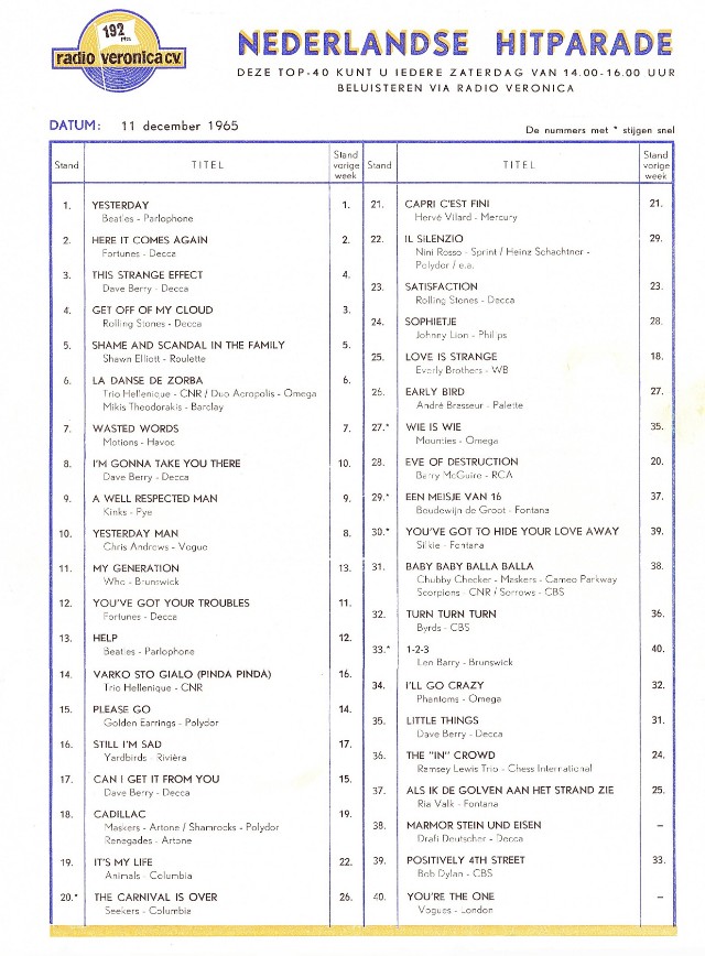 Om 14.00 uur de weekspecial en op zaterdag om 14.00 uur de top 40 van 55 jaar geleden